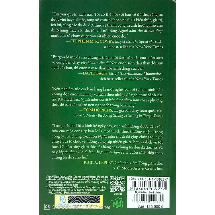 Người dám cho đi – Bán được nhiều hơn: Trong cuốn sách này, bạn sẽ khám phá cách mà việc cho đi có thể làm tăng doanh số và lợi nhuận. Những chiến lược và phương pháp cụ thể sẽ giúp bạn áp dụng tư duy này vào hoạt động kinh doanh của mình.