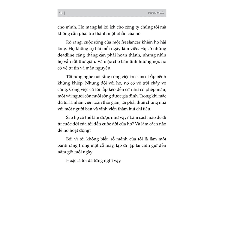 Cuốn sách mang đến những hướng dẫn chi tiết về cách tìm kiếm khách hàng, quản lý thời gian và tạo dựng thương hiệu cá nhân trong thế giới tự do. Đặc biệt, tác giả cũng chia sẻ những kinh nghiệm quý báu, giúp bạn vượt qua những rào cản tâm lý mà người hướng nội thường gặp phải. Bên cạnh đó, bạn sẽ tìm thấy những chiến lược để duy trì động lực và cân bằng cuộc sống cá nhân khi làm việc từ xa.