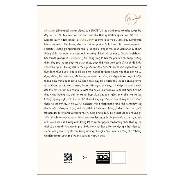 Cuốn sách không chỉ mang đến những bài học quý giá về cách sống, mà còn giúp bạn phát triển tâm hồn và trí tuệ. Epictetus nhấn mạnh vào sự quan trọng của việc kiểm soát cảm xúc và hành động của chính mình, từ đó tạo dựng một cuộc sống an lạc và hạnh phúc hơn.