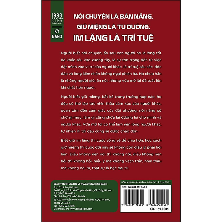 Nơi bán sách Nói Chuyện Là Bản Năng, Giữ Miệng Là Tu Dưỡng, Im Lặng Là Trí Tuệ uy tín, giá tốt nhất