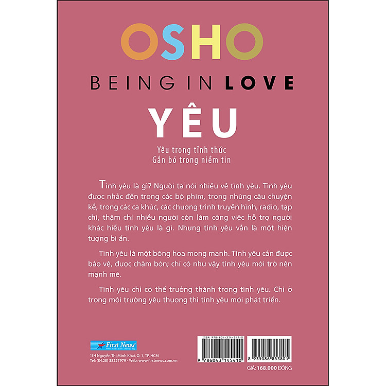 Cuốn sách “Yêu” khám phá sâu sắc về tình yêu từ nhiều góc độ khác nhau. Osho không chỉ nói về tình yêu lãng mạn mà còn mở rộng khái niệm tình yêu đến sự chấp nhận, lòng từ bi và sự kết nối giữa con người với nhau. Những bài học trong cuốn sách này sẽ giúp bạn hiểu rõ hơn về tình yêu và cách nó có thể làm phong phú thêm cuộc sống của bạn.