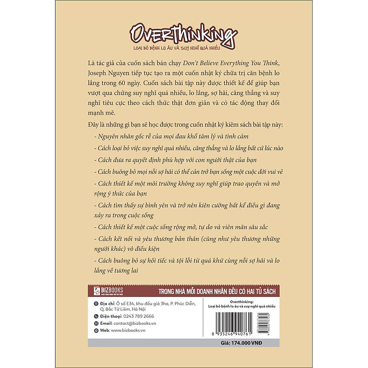- Tên sách: Overthinking: Loại bỏ bệnh lo âu và suy nghĩ quá nhiều