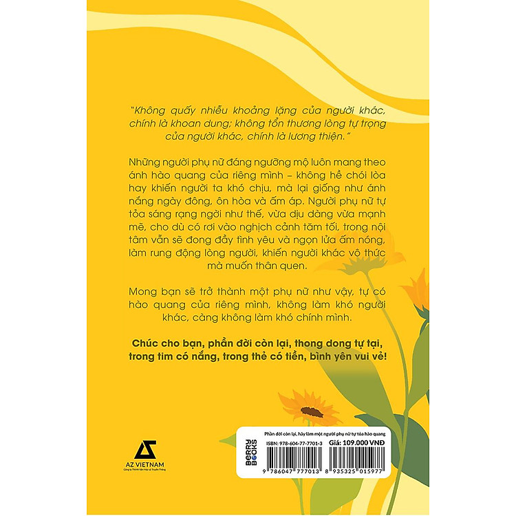 - Tựa đề: “Mua Phần Đời Còn Lại, Hãy Làm Một Người Phụ Nữ Tự Tỏa Hào Quang”