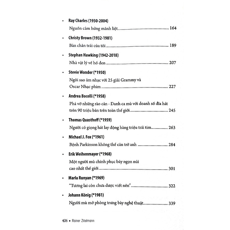 Sống Mãnh Liệt là cuốn sách mới nhất của tác giả Rainer Zitelmann, mang đến cái nhìn sâu sắc về những người khuyết tật đã vượt qua mọi rào cản để đạt được thành công trong cuộc sống. Qua những câu chuyện truyền cảm hứng, tác giả không chỉ ghi lại những thách thức mà các nhân vật phải đối mặt mà còn thể hiện ý chí kiên cường và tinh thần không bao giờ từ bỏ của họ.