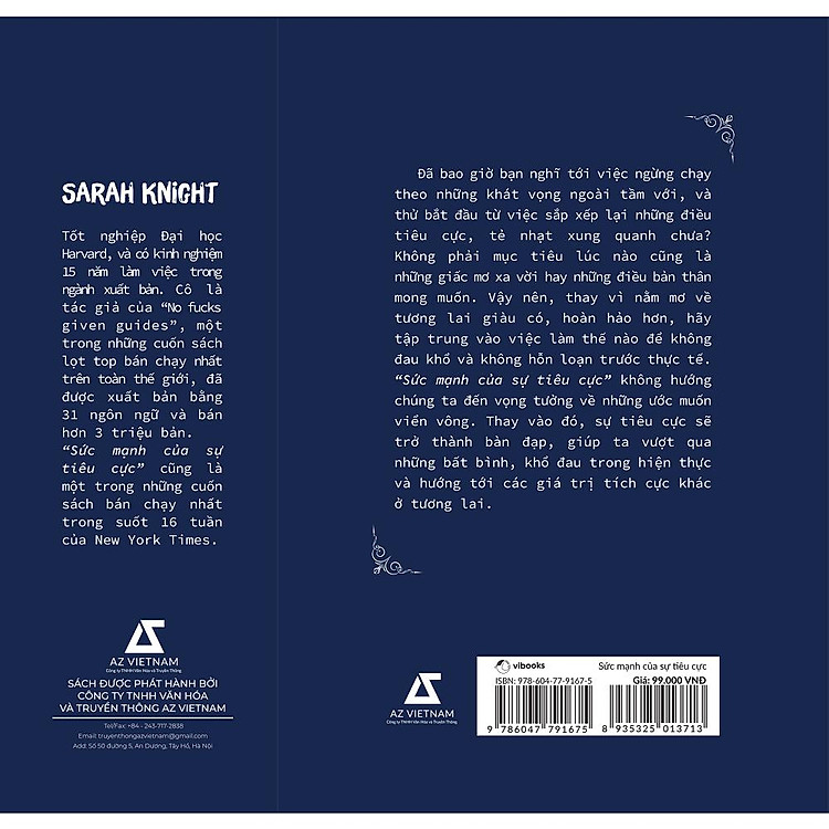 Cuốn sách không chỉ đơn thuần là một cuốn cẩm nang về tư duy tích cực. Thay vào đó, tác giả khuyến khích bạn chấp nhận và đối diện với những cảm xúc tiêu cực, từ đó biến chúng thành công cụ để phát triển bản thân. Với những câu chuyện thực tế và minh họa sinh động, Sarah Knight đã thành công trong việc truyền tải thông điệp rằng, đôi khi, sự tiêu cực cũng có thể là một phần quan trọng trong hành trình tìm kiếm hạnh phúc và thành công.