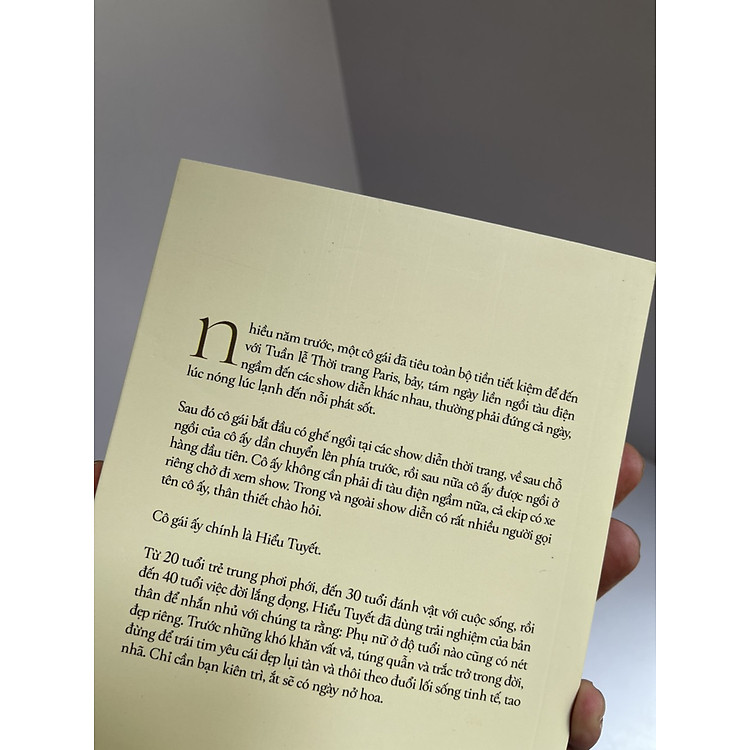 Nhiều năm trước, một cô gái đã tiêu toàn bộ số tiền tiết kiệm của mình để đến với Tuần lễ Thời trang Paris. Trong bảy, tám ngày, cô đã không ngừng di chuyển từ show diễn này sang show diễn khác, thường xuyên phải đứng cả ngày trên tàu điện ngầm, đối mặt với cái nóng nực và sự mệt mỏi. Tuy nhiên, những trải nghiệm đó không chỉ đơn thuần là những khó khăn mà còn là một hành trình để khám phá bản thân và tìm ra định nghĩa về thành công cho riêng mình.