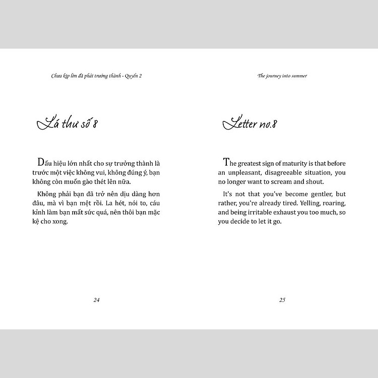 Cuốn sách “Chưa Kịp Lớn Đã Phải Trưởng Thành” không chỉ thu hút bởi nội dung hấp dẫn mà còn bởi cách viết tinh tế của tác giả. Phiên bản mùa hè mang đến một không khí tươi mới, hứa hẹn sẽ là người bạn đồng hành lý tưởng cho những buổi chiều thư giãn bên ly trà đá. Ngoài ra, việc sở hữu bản quyền tại VBooks cũng đảm bảo chất lượng nội dung và hình thức của cuốn sách.