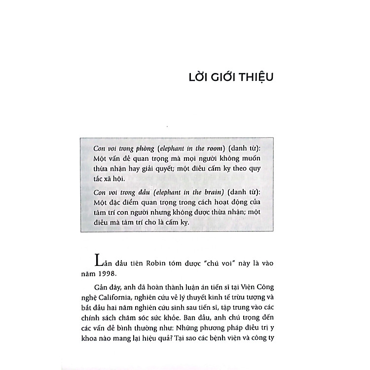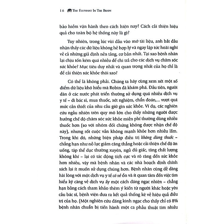 Trong Đầu Có Giấu Con Voi, hay còn gọi là The Elephant In The Brain, là một tác phẩm nổi bật được xuất bản bởi Taurus 1987 Books. Cuốn sách này không chỉ đơn thuần là một tài liệu nghiên cứu, mà còn là một hành trình khám phá tâm lý con người và những động cơ ẩn sâu bên trong hành vi của chúng ta. Tác giả đã khéo léo phân tích rằng con người, với bộ não của mình, không chỉ được lập trình để tồn tại, mà còn để xây dựng vị trí của mình trong xã hội.
