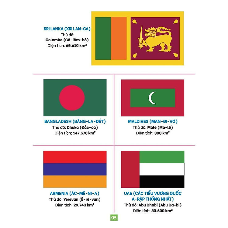 Mỗi trang sách là một chuyến hành trình khám phá các quốc gia khác nhau. Người đọc sẽ không chỉ biết đến tên các quốc gia mà còn hiểu rõ hơn về biểu tượng quốc kỳ của từng nước. Cuốn sách này là một công cụ tuyệt vời cho giáo viên, phụ huynh và bất kỳ ai muốn tạo ra một môi trường học tập thú vị cho trẻ nhỏ. Hình ảnh minh họa sinh động sẽ thu hút sự chú ý và kích thích trí tò mò của các em.