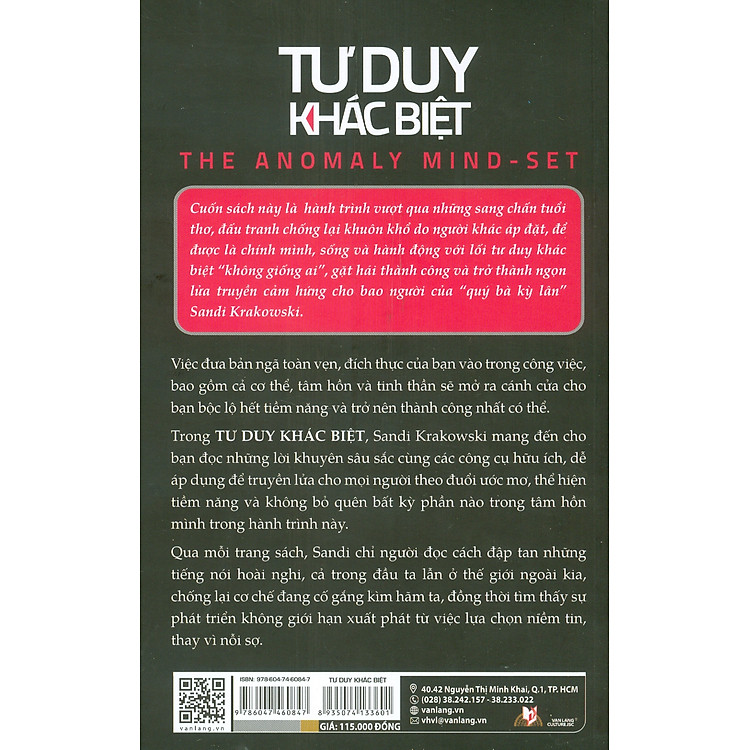 Cuốn sách khám phá những khía cạnh quan trọng của tư duy khác biệt, từ việc phát hiện ra điểm mạnh cá nhân cho đến cách xây dựng thương hiệu bản thân. Với những câu chuyện minh họa sống động và bài học thực tiễn, tác giả khuyến khích độc giả dám mơ lớn và hành động mạnh mẽ để hiện thực hóa những ước mơ đó. “Mua Tư Duy Khác Biệt” không chỉ giúp bạn nhận ra giá trị của sự khác biệt mà còn hướng dẫn bạn cách tận dụng nó để tạo ra những cơ hội mới trong cuộc sống.