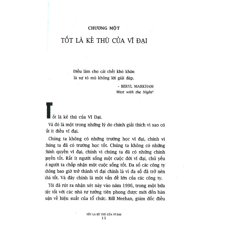 Cuốn sách này mang đến cho độc giả những bài học quý giá về lãnh đạo, quản lý và phát triển tổ chức. Jim Collins đã chỉ ra rằng để đạt được sự xuất sắc bền vững, các công ty không chỉ cần có tầm nhìn rõ ràng mà còn phải biết cách xây dựng đội ngũ nhân viên, phát triển văn hóa doanh nghiệp và duy trì sự kiên trì trong hành trình phấn đấu.