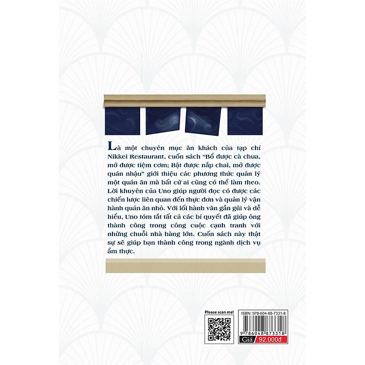 Cuốn sách này được ví như một “hướng dẫn viên” trong ngành ẩm thực, giúp bạn hiểu rõ hơn về cách thức quản lý một quán ăn. Uno Takashi, với hơn 40 năm kinh nghiệm trong lĩnh vực ẩm thực, đã chia sẻ những kinh nghiệm quý báu của mình. Tác giả không chỉ đơn thuần đưa ra lý thuyết mà còn kể lại những câu chuyện thực tế, từ đó giúp người đọc có cái nhìn thực tế hơn về ngành kinh doanh này.