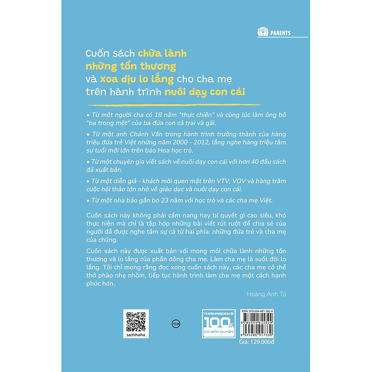 “Cha mẹ khờ – Ôn luyện con khôn” của tác giả Hoàng Anh Tú đưa ra những phương pháp và cách tiếp cận mới mẻ trong việc nuôi dạy trẻ. Cuốn sách không chỉ tập trung vào lý thuyết suông mà còn kết hợp những trải nghiệm thực tiễn từ chính tác giả và những người làm cha mẹ. Bạn sẽ tìm thấy trong đó những hướng dẫn cụ thể về cách giao tiếp với trẻ, phát triển tư duy sáng tạo và xây dựng thói quen học tập cho con.