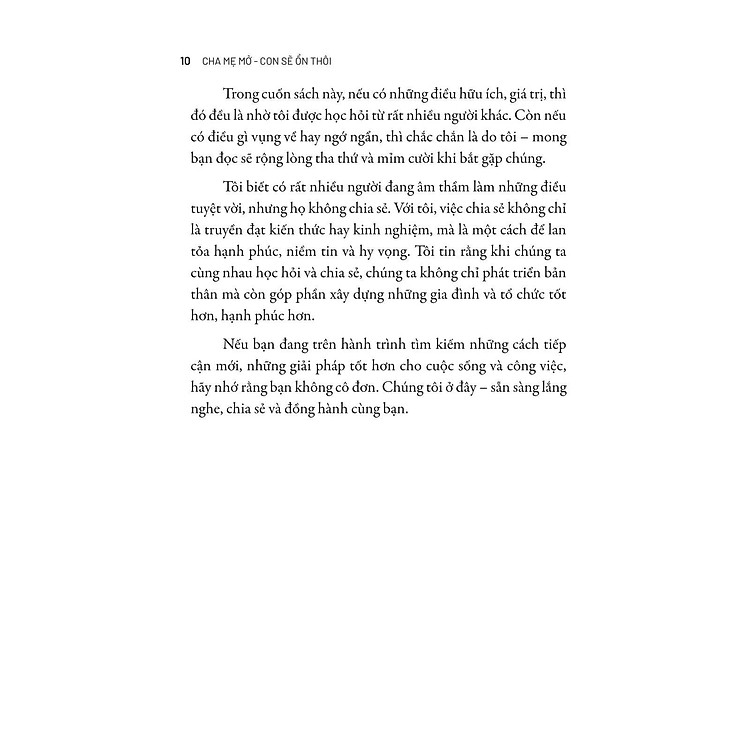 Trong cuộc sống hiện đại, việc nuôi dạy con cái không chỉ đơn thuần là cung cấp thức ăn hay chỗ ở mà còn là một hành trình khám phá. Bạn có bao giờ tự hỏi làm thế nào để con cái có thể phát triển một cách tự tin và độc lập? Cuốn sách Cha Mẹ Mở – Con Sẽ Ổn Thôi chính là một cẩm nang giúp bạn tìm ra con đường đúng đắn trong việc nuôi dạy trẻ, từ đó giúp trẻ có thể đứng vững trong xã hội đầy thử thách hiện nay.