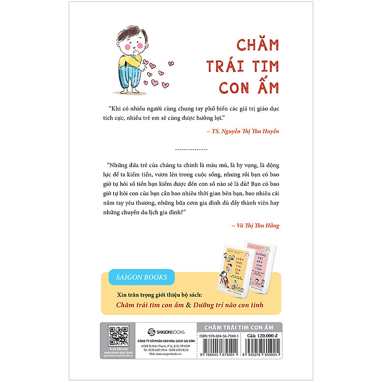 Không chỉ cung cấp kiến thức, “Chăm Trái Tim Con Ấm” còn truyền cảm hứng mạnh mẽ cho độc giả. Đây là lựa chọn tuyệt vời cho những ai muốn tìm nguồn động lực mới. Hãy tham khảo ngay bảng giá bên dưới để mua sách dễ dàng và tiết kiệm hơn.”