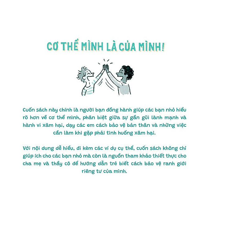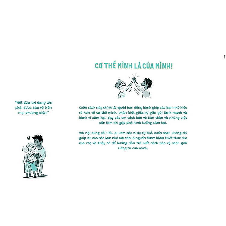 Cuốn sách này chính là người bạn đồng hành giúp các bạn nhỏ hiểu rõ hơn về cơ thể mình, phân biệt giữa sự gần gũi lành mạnh và hành vi xâm hại, dạy các em cách bảo vệ bản thân và những việc cần làm khi gặp phải tình huống xâm hại.