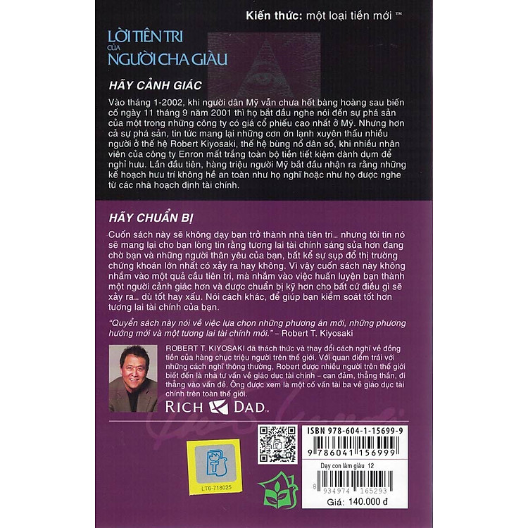 Các thông tin khác: DẠY CON LÀM GIÀU – TẬP 12: LỜI TIÊN TRI CỦA NGƯỜI CHA GIÀU (Bản in năm 2021)