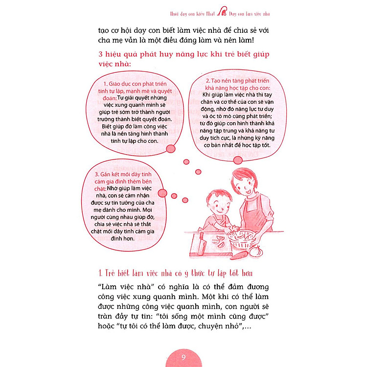 Tăng cường tình cảm gia đình: Tham gia vào các công việc chung không chỉ giúp trẻ học hỏi mà còn gắn kết tình cảm giữa các thành viên trong gia đình. Mình nghĩ, những khoảnh khắc cùng nhau nấu ăn hay dọn dẹp sẽ là những kỷ niệm đẹp đẽ mà cả gia đình sẽ nhớ mãi.