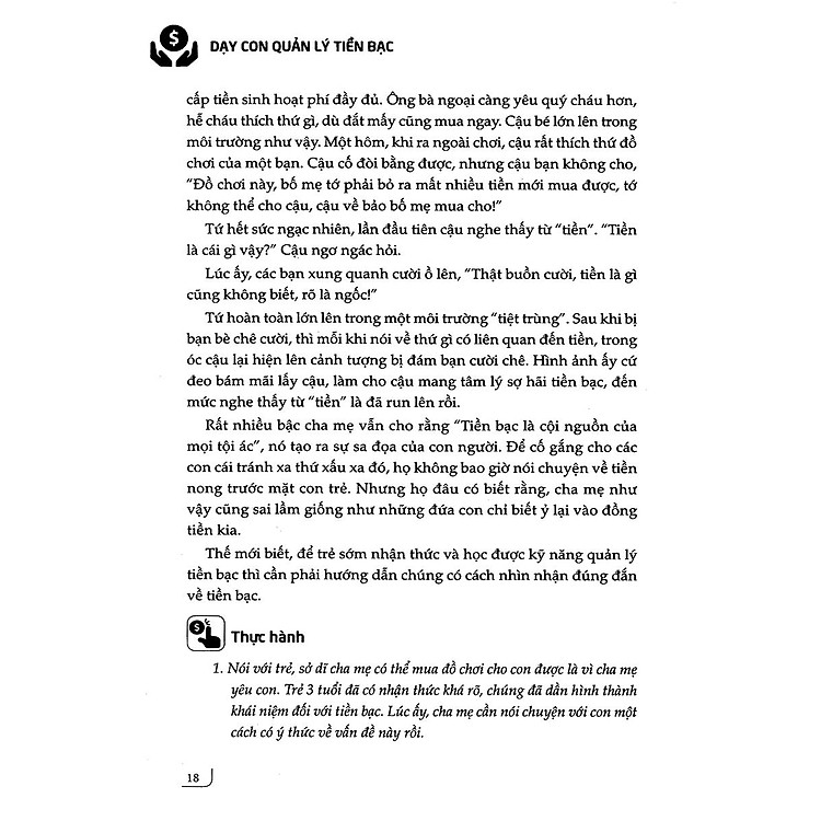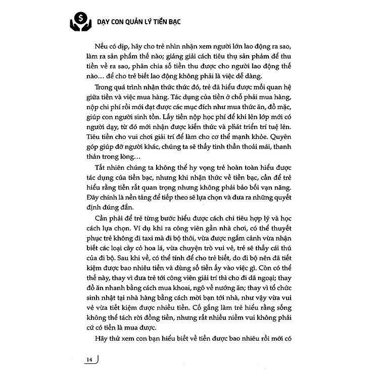 Dạy Con Quản Lý Tiền Bạc không chỉ đơn thuần là một cuốn sách lý thuyết mà còn là một hướng dẫn thực hành thiết thực cho cả phụ huynh và trẻ em. Cuốn sách cung cấp những bài tập thực hành dễ hiểu và thú vị, giúp trẻ em nắm bắt được khái niệm về tiền bạc, cách quản lý tiền chi tiêu và giá trị của việc tiết kiệm. Với Dạy Con Quản Lý Tiền Bạc, bạn sẽ thấy rõ rằng việc dạy trẻ quản lý tài chính không cần phải khô khan mà hoàn toàn có thể trở thành một trò chơi bổ ích.