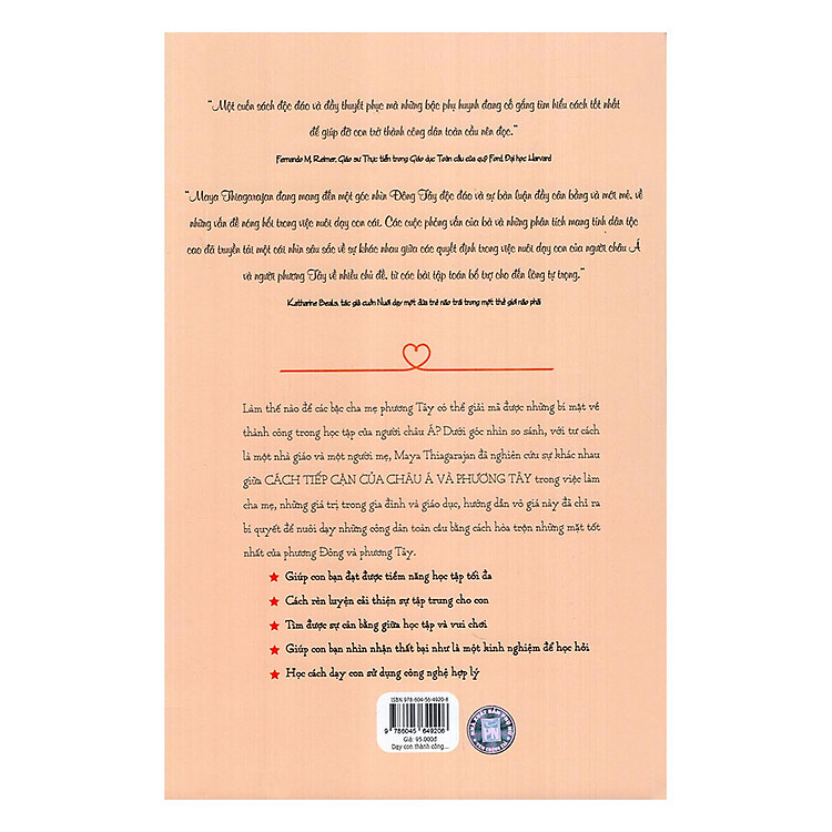 Bố mẹ nào cũng nên mua cuốn sách này. Một góc nhìn rất hay của tác giả, người trải nghiệm sâu ở cả 2 nền giáo dục phương Đông và phương Tây