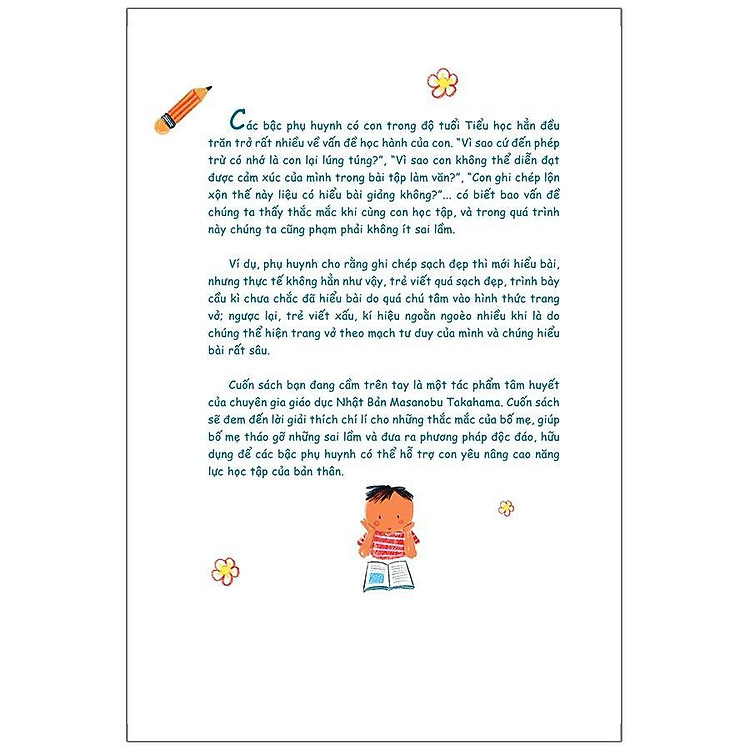 Masanobu Takahama, tác giả cuốn sách, đã đưa ra những phương pháp cụ thể và lý thú để bồi dưỡng năng lực học tập của trẻ em. Ông không chỉ trình bày những lý thuyết khô khan mà còn kết hợp với những câu chuyện thực tế và trải nghiệm từ chính cuộc sống. Cuốn “Để Việc Học Không Làm Khó Trẻ” mang đến cho phụ huynh và giáo viên những gợi ý thiết thực giúp trẻ phát triển tư duy độc lập và niềm đam mê học hỏi.