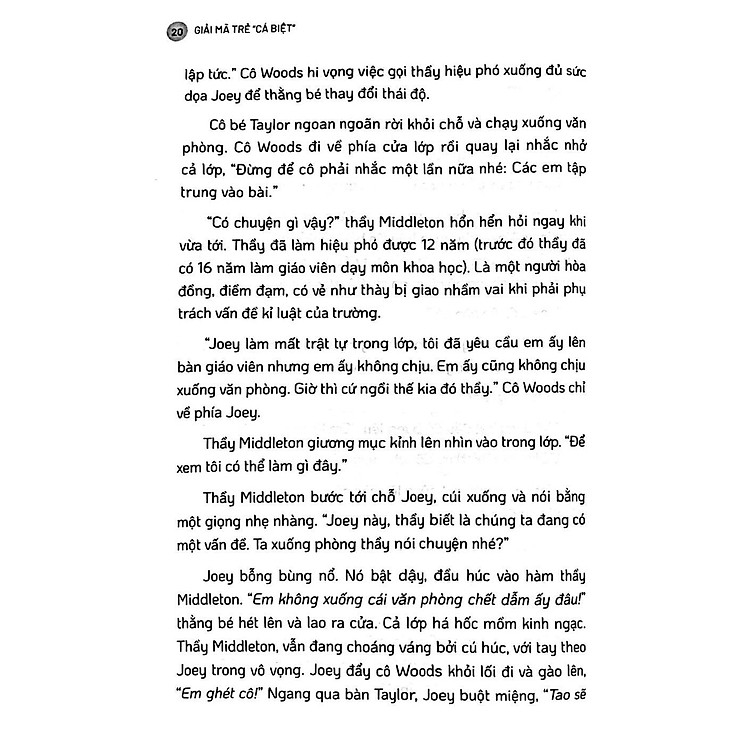 Giải Mã Trẻ “Cá Biệt” không chỉ đơn thuần là một cuốn sách về giáo dục mà còn là một hướng dẫn đầy cảm hứng để hiểu về những đứa trẻ cá biệt. Cuốn sách đề cập đến những nguyên nhân sâu xa dẫn đến hành vi khác thường của trẻ, từ đó giúp phụ huynh và giáo viên nắm bắt được tâm lý và nhu cầu của trẻ. Tác giả khéo léo lồng ghép những ví dụ thực tế, giúp độc giả dễ dàng nhận ra rằng không phải mọi đứa trẻ đều phát triển theo một khuôn mẫu nhất định.