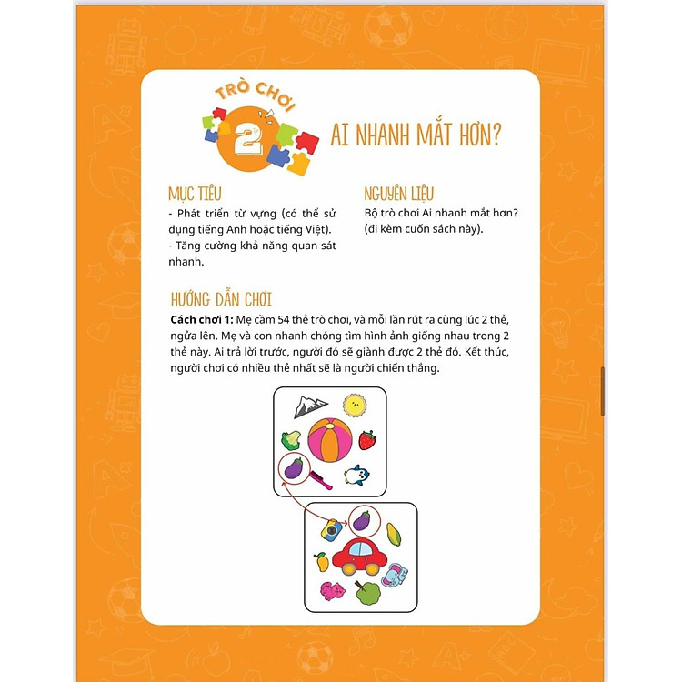 - Cung cấp 54 thẻ trò chơi với câu hỏi “Ai nhanh mắt hơn?”.