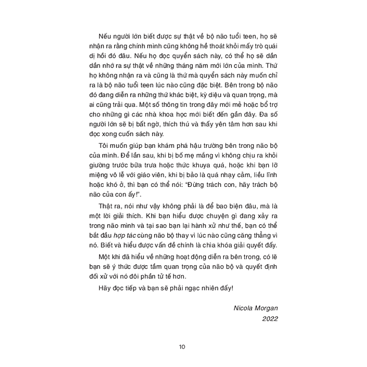 Hiểu Bộ Não, Lý Giải Ứng Xử Tuổi Teen là một tác phẩm thiết thực và đầy cảm hứng, nhằm giúp các bạn trẻ nhận thức rõ hơn về chính mình. Cuốn sách đi sâu vào cơ chế hoạt động của bộ não trong giai đoạn phát triển, từ đó lý giải những hành vi và cảm xúc mà tuổi teen thường gặp phải. Thông qua các nghiên cứu tâm lý và sinh học, tác giả mang đến cho độc giả những góc nhìn mới mẻ, giúp các bạn trẻ không chỉ hiểu bản thân mà còn phát triển tiềm năng của mình.