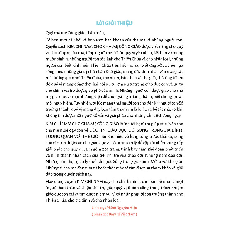 Có bao giờ bạn tự hỏi: “Liệu mình đã làm đủ tốt trong vai trò cha mẹ chưa?” Hay “Mình có thể làm gì để con cái phát triển một cách toàn diện?” Đó là những câu hỏi mà rất nhiều bậc phụ huynh gặp phải trong hành trình nuôi dạy con. Trong khi cuộc sống bận rộn và nhiều áp lực, việc tìm kiếm những kiến thức và phương pháp để trở thành một người cha, người mẹ tốt hơn là điều cực kỳ cần thiết. KIM CHỈ NAM CHO CHA MẸ CÔNG GIÁO chính là một cuốn sách sẽ giúp bạn hiểu rõ hơn về vai trò quan trọng này.
