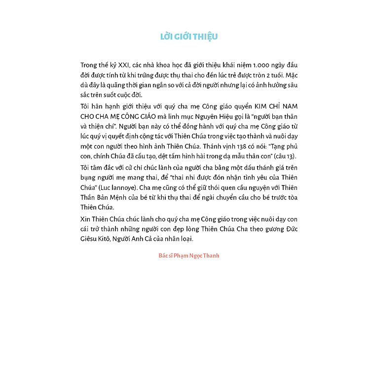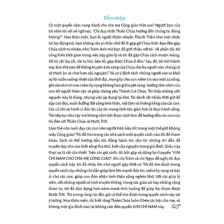 Cuốn sách KIM CHỈ NAM CHO CHA MẸ CÔNG GIÁO không chỉ dừng lại ở việc cung cấp kiến thức mà còn mở ra một hành trình tìm kiếm những giá trị tinh thần trong việc nuôi dạy con cái. Như tác giả đã từng nói: “Cha mẹ không chỉ là người nuôi dưỡng mà còn là những người dẫn dắt, định hình tương lai cho thế hệ tiếp theo.” Hãy để cuốn sách này đồng hành cùng bạn trong hành trình trở thành một bậc phụ huynh tốt hơn. Bạn đã sẵn sàng để khám phá và phát triển bản thân trong vai trò cao quý này chưa?
