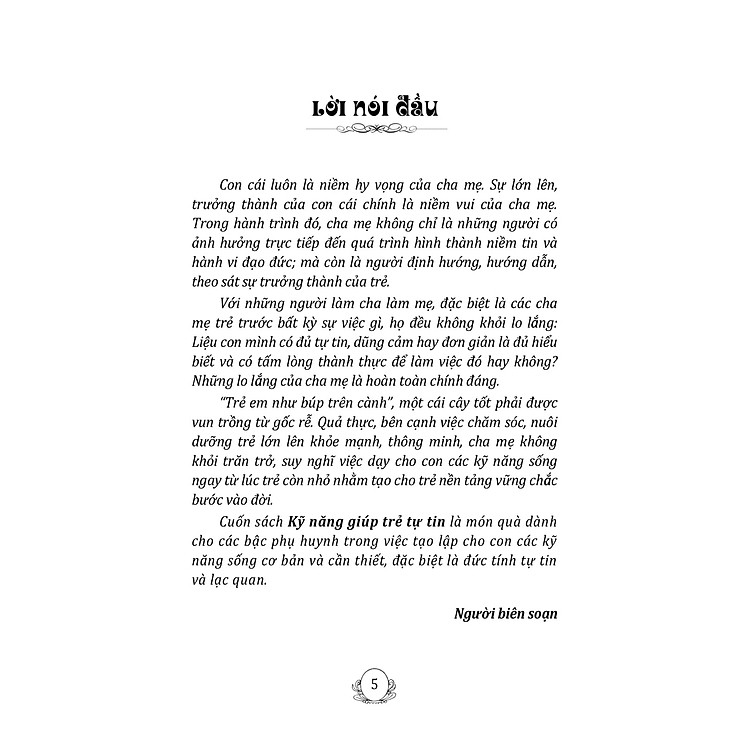 Cuốn sách này không chỉ là một hướng dẫn mà còn là một nguồn cảm hứng để giúp cha mẹ tự tin hơn trong việc giáo dục con cái. Như một câu nói nổi tiếng đã từng khẳng định: “Sự tự tin là bước đầu tiên dẫn đến thành công.” Liệu bạn đã sẵn sàng để giúp trẻ xây dựng nền tảng vững chắc cho tương lai? Hãy để DocGia.vn đồng hành cùng bạn trong hành trình này!