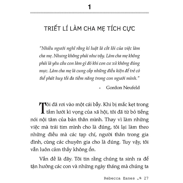 Làm Cha Mẹ Tích Cực không chỉ đơn thuần là những lý thuyết suông về việc nuôi dạy trẻ. Rebecca Eanes mang đến cho độc giả một cái nhìn sâu sắc về cách xây dựng mối quan hệ tích cực trong gia đình. Từ những trang sách đầu tiên, tác giả đã chỉ ra rằng việc nuôi dạy con cái không chỉ là trách nhiệm mà còn là một hành trình hạnh phúc. Mỗi trang sách như một bản hướng dẫn, giúp cha mẹ hiểu được tâm tư, tình cảm của trẻ và cách để đồng hành cùng con trong suốt quá trình phát triển.