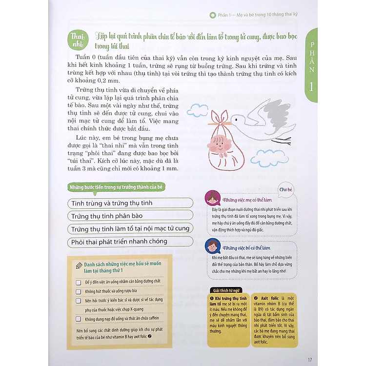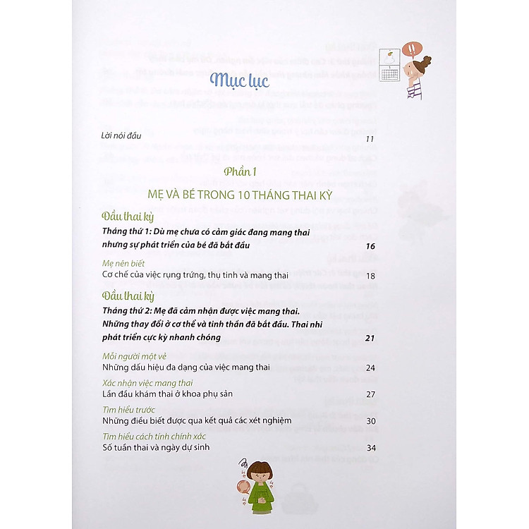 Kiến thức về thai kỳ: Cuốn sách cung cấp thông tin chi tiết về từng giai đoạn phát triển của thai nhi, từ tuần đầu tiên cho đến lúc sinh. Bạn sẽ hiểu rõ hơn về cơ thể mình và những gì cần chăm sóc để cả mẹ và bé đều khỏe mạnh.