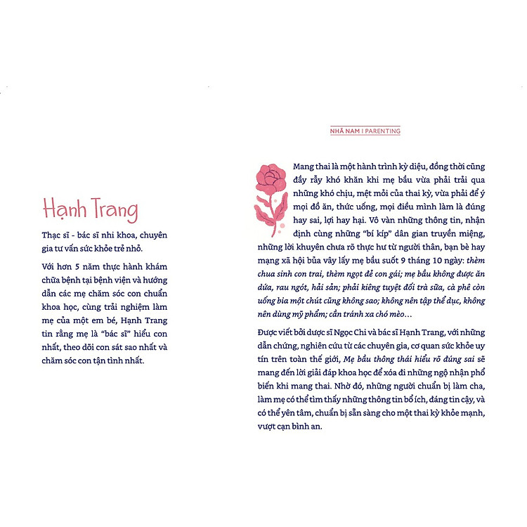 Ngọc Chi và Hạnh Trang là những tác giả có nhiều năm kinh nghiệm trong lĩnh vực chăm sóc sức khỏe bà mẹ và trẻ em. Họ không chỉ là những chuyên gia mà còn là những người mẹ, hiểu rõ những lo lắng và băn khoăn của các bà mẹ trong giai đoạn mang thai. Sự kết hợp giữa kiến thức và trải nghiệm thực tế đã mang đến cho cuốn sách một cái nhìn chân thực và gần gũi.