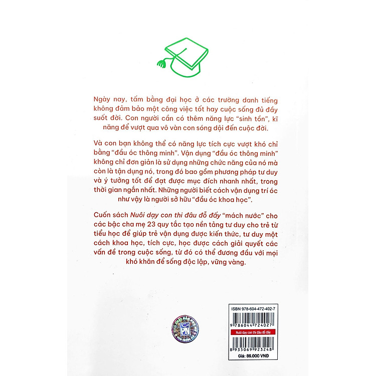 Nuôi Dạy Con Thi Đâu Đỗ Đấy tập trung vào việc phát triển toàn diện cho trẻ em, không chỉ về học vấn mà còn cả những kỹ năng sống cần thiết. Tác giả chỉ ra rằng, một tấm bằng đại học từ trường danh tiếng không phải là sự đảm bảo cho thành công trong tương lai. Cuốn sách đưa ra những quan điểm mới mẻ, khuyến khích phụ huynh khám phá các phương pháp nuôi dạy giúp trẻ phát triển năng lực “sinh tồn”, từ việc tự lập cho đến khả năng giải quyết vấn đề.
