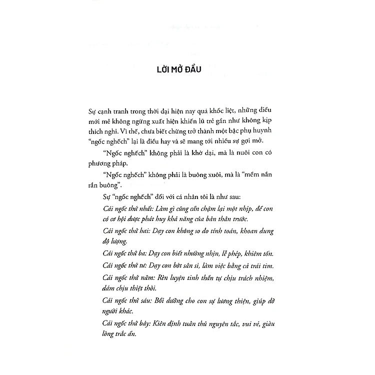 Phụ Huynh Khôn Ngoan Giả Vờ Ngốc Nghếch không chỉ đơn thuần là một cuốn sách về nuôi dạy con cái; nó chính là một hành trình tìm kiếm sự cân bằng giữa việc chăm sóc và để trẻ tự khám phá. Cuốn sách khuyến khích các bậc phụ huynh nhìn nhận lại cách họ tương tác với con cái, từ việc cho chúng không gian tự do cho đến việc dạy cho chúng những bài học quý giá từ cuộc sống. Sách cung cấp những phương pháp cụ thể và dễ áp dụng để giúp cha mẹ trở thành người dẫn dắt khéo léo, không chỉ là người giám sát.