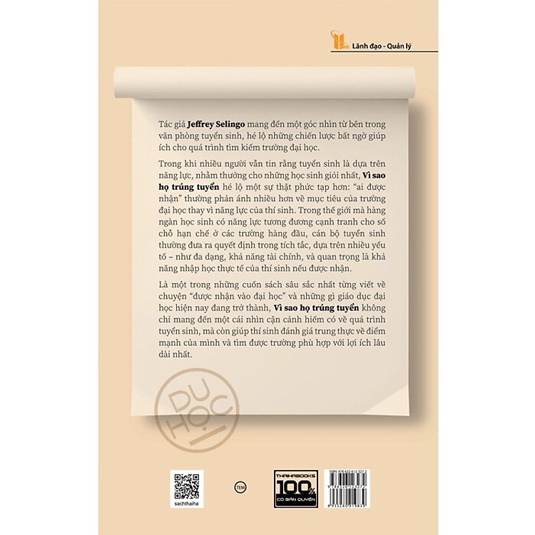 Trong cuộc sống hiện đại, việc trúng tuyển vào một trường đại học danh tiếng không chỉ là ước mơ của nhiều học sinh mà còn là một thử thách lớn. Bạn có bao giờ tự hỏi điều gì đã giúp một số người vượt qua được những rào cản khó khăn để trở thành sinh viên của những ngôi trường hàng đầu? Cuốn sách “Vì Sao Họ Trúng Tuyển – Góc Nhìn Của Nhà Tuyển Sinh Đại Học” sẽ mang đến cho bạn những góc nhìn sâu sắc từ chính những người làm công tác tuyển sinh, giúp bạn hiểu rõ hơn về quy trình và những yếu tố quyết định trong việc tuyển sinh.