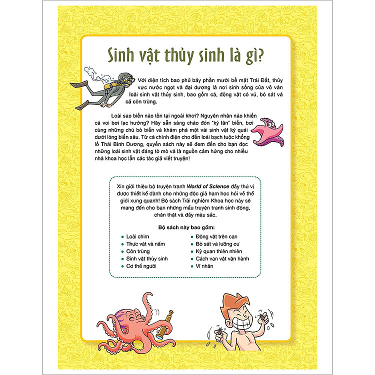 Có bao giờ bạn nhìn vào một hồ nước và tự hỏi, dưới lớp nước trong xanh kia có những sinh vật kỳ thú nào đang sống? Những bí ẩn về sinh vật thủy sinh không chỉ đơn thuần là một câu hỏi thú vị, mà còn là một thế giới rộng lớn đang chờ bạn khám phá. Hãy cùng nhau bước vào cuộc hành trình này qua cuốn sách “World Of Science – Những Bí Ẩn Về Sinh Vật Thủy Sinh”. Cuốn sách này sẽ giúp bạn hiểu rõ hơn về thế giới dưới nước, từ những sinh vật nhỏ bé nhất cho đến những điều kỳ diệu mà chúng ta chưa từng biết đến.