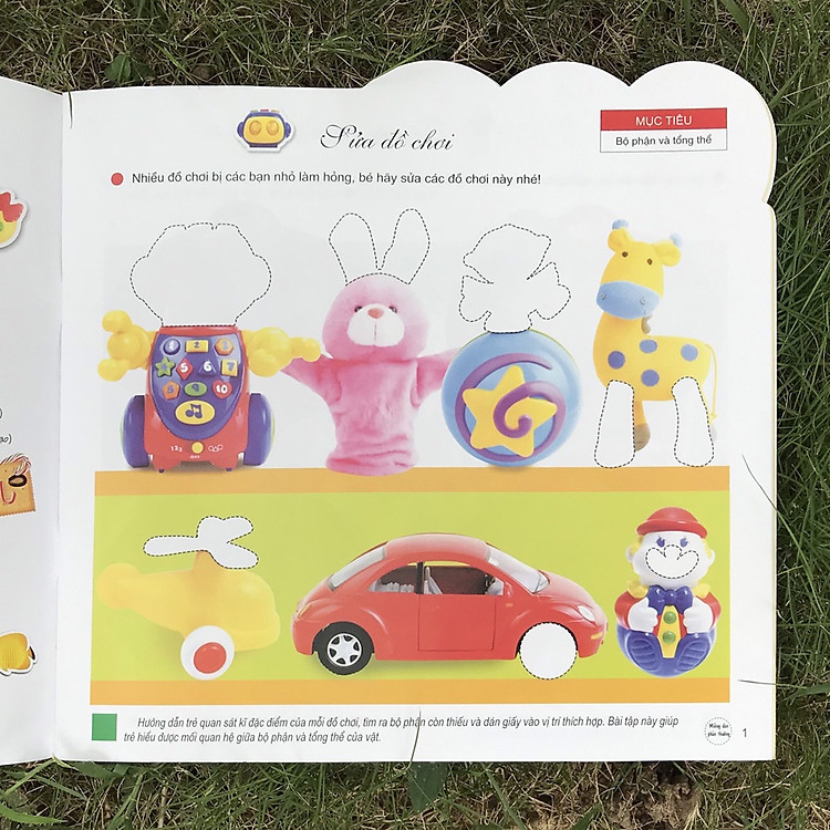 - Khả năng tư duy logic: Mỗi miếng dán đều được gắn với các câu hỏi kích thích tư duy. Ví dụ, khi dán hình một chiếc xe, trẻ có thể được hỏi “Chiếc xe này đi nhanh hay chậm?”.
