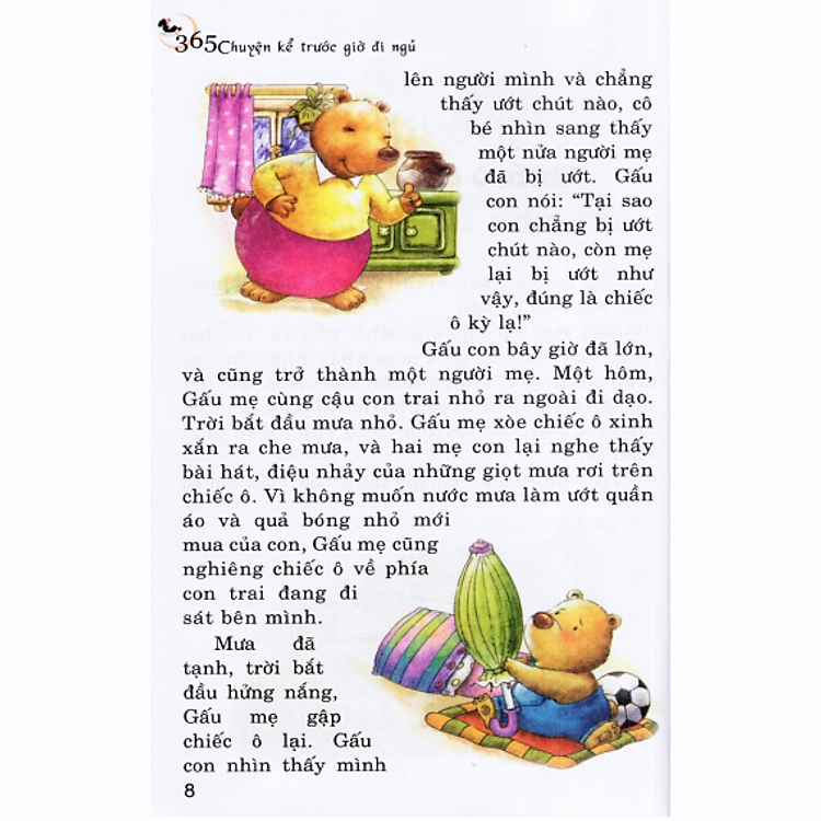 Trong cuốn sách 365 Chuyện Kể Trước Giờ Đi Ngủ, mỗi câu chuyện là một bài học quý giá về tình cảm, sự sẻ chia và cách xử lý cảm xúc. Mỗi đêm, cha mẹ có thể cùng con đọc một câu chuyện ngắn, từ đó mở ra các cuộc trò chuyện ý nghĩa về những gì trẻ cảm nhận trong cuộc sống hàng ngày. Những câu chuyện không chỉ giải trí mà còn mang đến những thông điệp sâu sắc, giúp trẻ em hiểu và phát triển chỉ số tình cảm EQ.