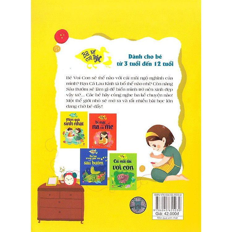 Ba Kể Con Nghe là một tập hợp những câu chuyện sinh động và gần gũi, được thiết kế dành riêng cho trẻ em từ 3 đến 12 tuổi. Những nhân vật như Bé Voi Con, bạn Cá Lau Kính và nàng Sâu Bướm không chỉ mang lại sự vui tươi mà còn giúp trẻ hiểu về bản thân và thế giới xung quanh. Mỗi câu chuyện trong sách không chỉ đơn thuần là giải trí mà còn chứa đựng những bài học nhân văn, khuyến khích trẻ em phát triển tư duy và cảm xúc.