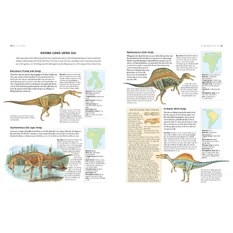 Tính tới thời điểm hiện tại, thì đây là cuốn sách về khủng long đầy đủ nhất tại Việt Nam. Cuốn sách giới thiệu 355 loài khủng long và động vật thời Tiền sử khác như dực long, placodont, ngư long,nothosaur,… cuốn sách nêu từng loài khủng long trong kỉ Triassic, Jurassic và Creata trong đó từng thời gian sẽ phân loại,sắp xếp các loài trong các nhóm khủng long .Mỗi loài luôn có thông tin về kích thước, nơi phát hiện và phân loại rất chi tiết. Tên từng loài được giữ nguyên và có thêm các tên Hán Việt giúp người đọc dễ nhớ hơn. Và cái cuối cùng là sách được minh hoạ bằng hình ảnh đẹp đến từng chi tiết.