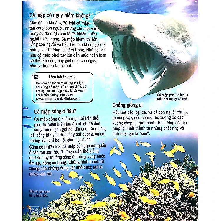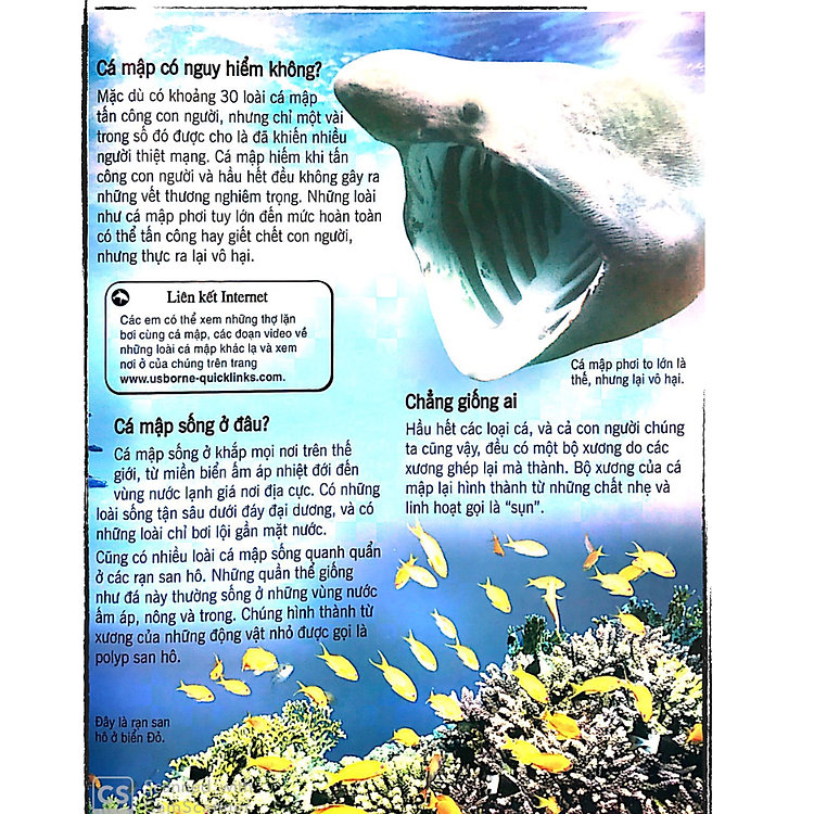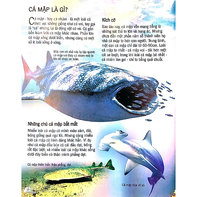 Sách đẹp, trang giấy dày, in ấn sắc nét. Nội dung chỉ tổng quan về các loài cá mập. Tuy nhiên đối với các bé thì kiến thức chung như vậy là ok rồi.