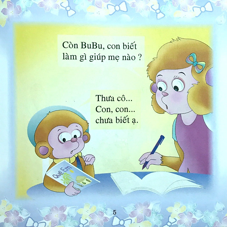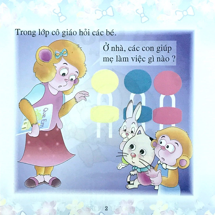 - Khuyến khích hành động giúp đỡ: Những ví dụ trong sách minh họa cho việc giúp đỡ mẹ thông qua các hoạt động như dọn dẹp, chăm sóc động vật.