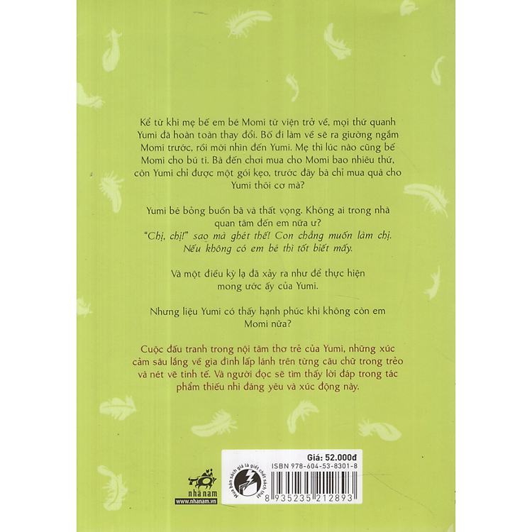 Kể từ khi mẹ bế em bé Momi từ viện trở về, mọi thứ quanh Yumi đã hoàn toàn thay đổi. Bố đi làm về sẽ ra giường ngắm Momi trước, rồi mới nhìn đến Yumi. Mẹ thì lúc nào cũng bé Momi cho bú ti. Bà đến chơi mua cho Momi bao nhiêu thứ, còn Yumi chỉ được một gói kẹo, trước đây bà chỉ mua quả cho Yumi thôi cơ mài Yumi bé bỏng buồn bà và thất vọng. Không ai trong nhà quan tâm đến em nữa ư ? “Chị, chị” sao mà ghét thế! Con chẳng muốn làm chị. Nếu không có em bé thì tốt biết mấy. Và một điều kỳ lạ đã xảy ra như để thực hiện mong ước ấy của Yumi. Nhưng liệu Yumi có thấy hạnh phúc khi không còn em Momi nữa? Cuộc đấu tranh trong nội tâm thơ trẻ của Yumi, những xúc cảm sâu lắng về gia đình lấp lãnh trên từng câu chữ trong trẻo và nét về tinh tế. Và người đọc sẽ tìm thấy lời đáp trong tác phẩm thiếu nhi đáng yêu và xúc động này.
