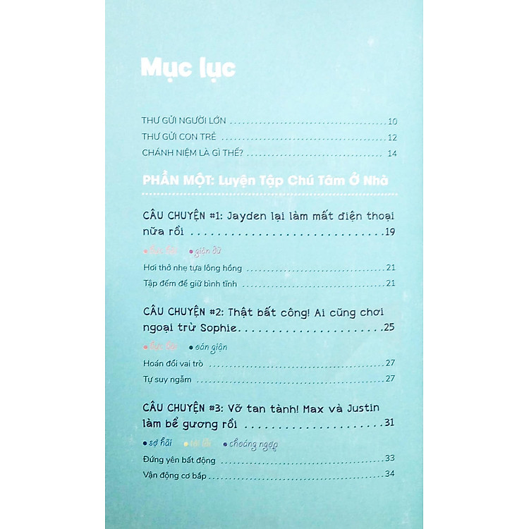 Khuyến khích sự tập trung: Các bài tập chánh niệm trong sách giúp trẻ cải thiện khả năng tập trung. Ví dụ, một bài tập đơn giản là ngồi yên lặng và lắng nghe âm thanh xung quanh.