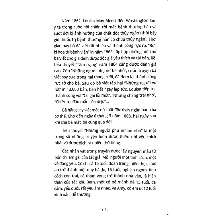 - Tác giả: Louisa May Alcott (1832 – 1888), nổi tiếng với các tác phẩm văn học cổ điển