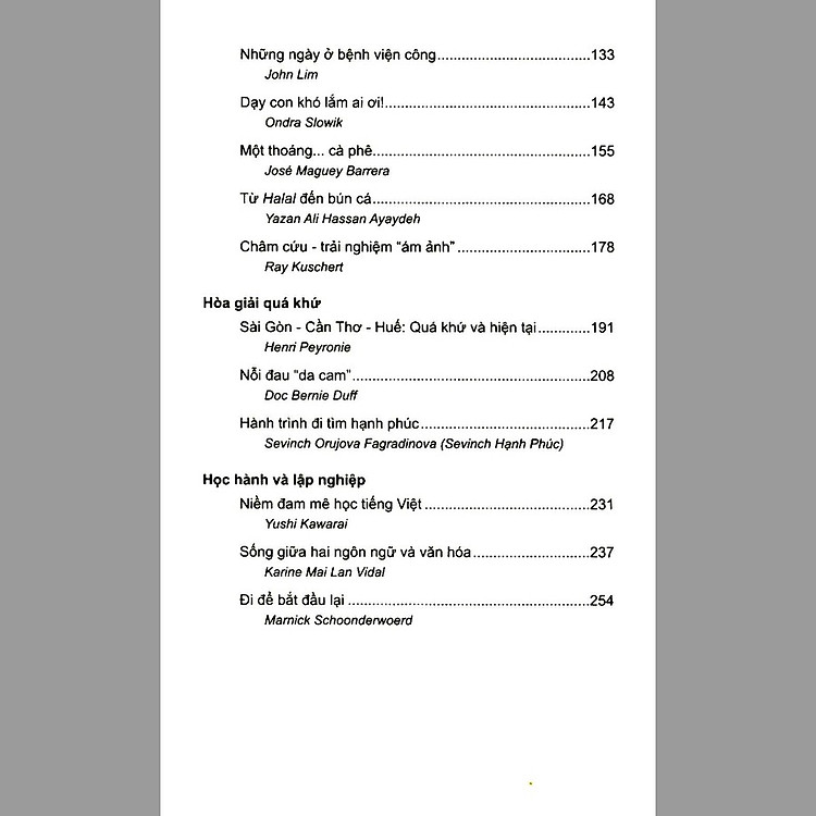 Hôm đó mình lòng vòng ngoài Đường sách thì vô tình biết được sự kiện gì đấy của người nước ngoài. Cũng tò mò nên đứng nghe. Nó thú vị lắm. Có 1 tốp nói tiếng Anh, 1 tốp nói tiếng Việt. Họ chia sẻ những trải nghiệm của mình về Việt Nam. Mình thật sự không nghĩ họ lại có cảm tình với Việt Nam đến thế. Họ kể chuyện vừa buồn vừa vui, chân thành và sâu lắng lắm. Mình không nghĩ người nước ngoài cũng có những cảm xúc đậm nét Việt đến nỗi như vậy. Họ phải đối mặt với nghịch cảnh rất nhiều trong quá khứ. Ai cũng thế. Và bây giờ, họ ngồi đây kể chuyện đời, chuyện người rất cảm động, rất trưởng thành. Cuốn sách này là món quà mình nhận được trong phần đố vui của chương trình, và những chữ ký là kỷ niệm của họ gửi cho mình trong buổi sáng tuyệt vời hôm đó. Cuốn sách hay lắm. Cảm ơn những bạn đã làm ra cuốn sách này ?