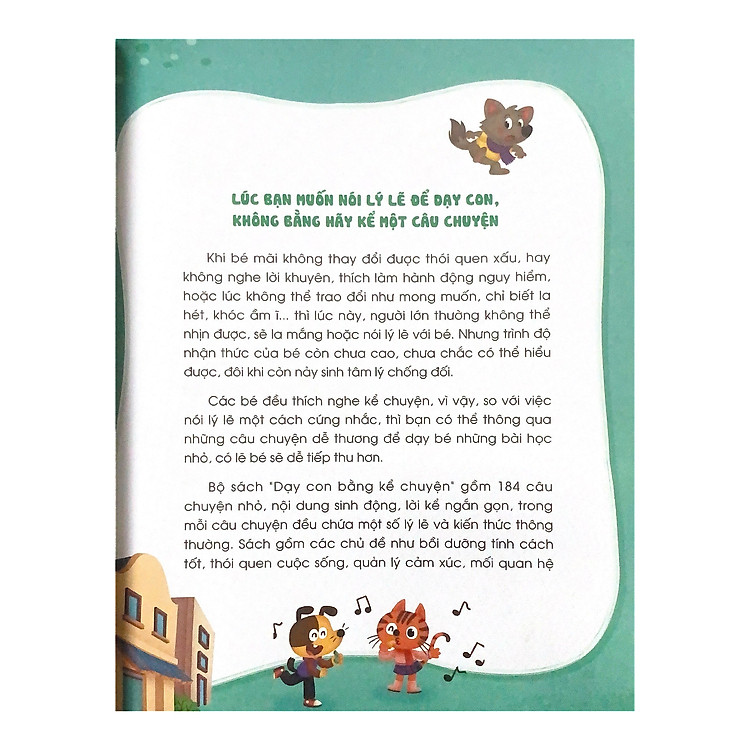 Giá trị đạo đức: Cuốn sách khéo léo lồng ghép các bài học về lòng tốt, sự chia sẻ và trách nhiệm, giúp trẻ hình thành những giá trị sống tốt đẹp. Ví dụ, một câu chuyện về một chú mèo giúp đỡ bạn bè sẽ khiến trẻ hiểu hơn về tình bạn và sự giúp đỡ lẫn nhau.