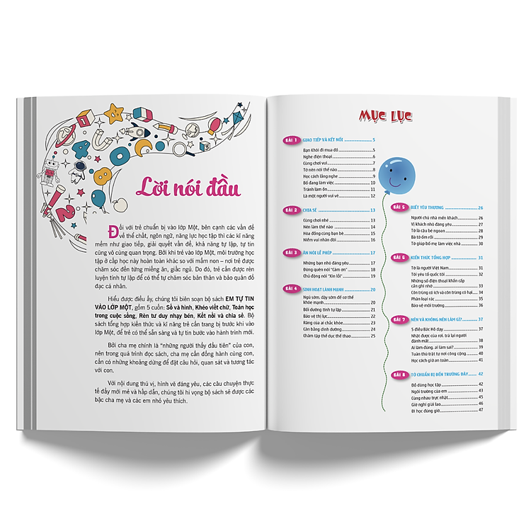 - Combo “Em Tự Tin Vào Lớp Một” gồm 5 cuốn sách.